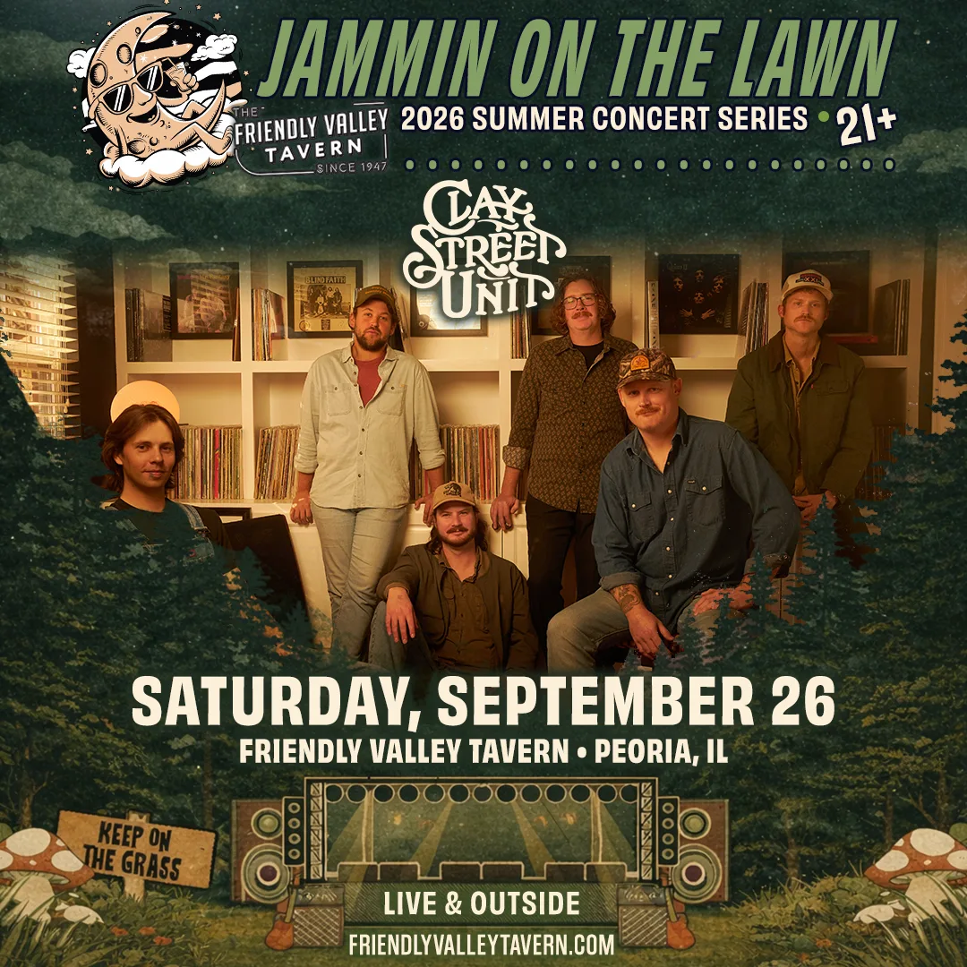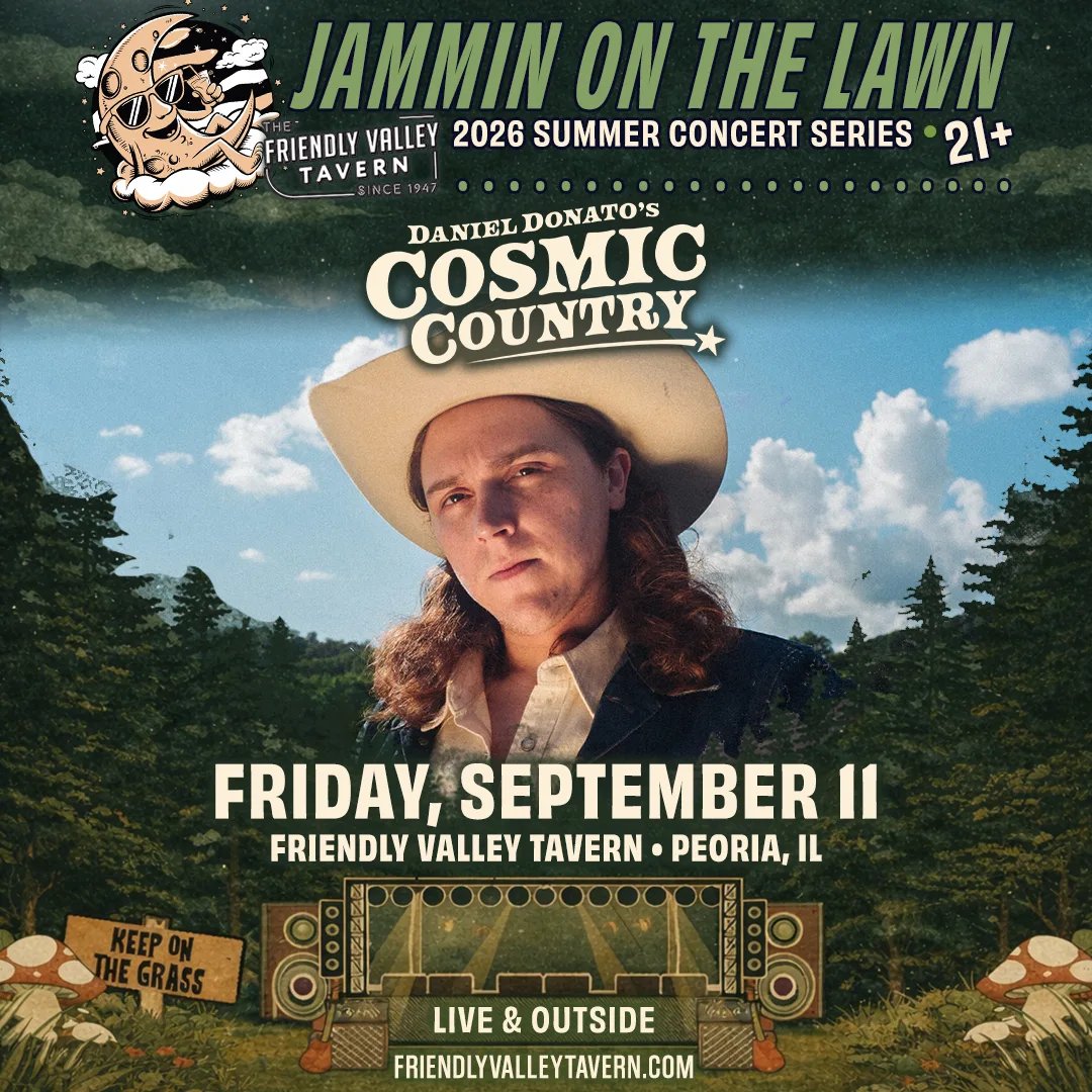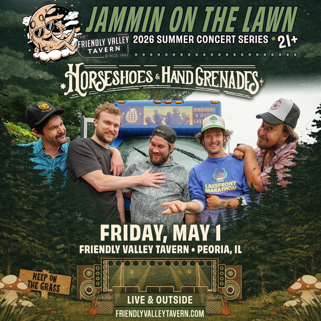 Jammin’ On The Lawn 2026 🤘 We’re back and making this our best season yet 🎸 Get ready for a summer full of music-filled nights under the Peoria sky at Friendly Valley Tavern… 20 shows, including multiple FREE concerts to enjoy with friends, family, and a cold drink in hand 🍻 FREE Parking Shuttle with more info coming soon.