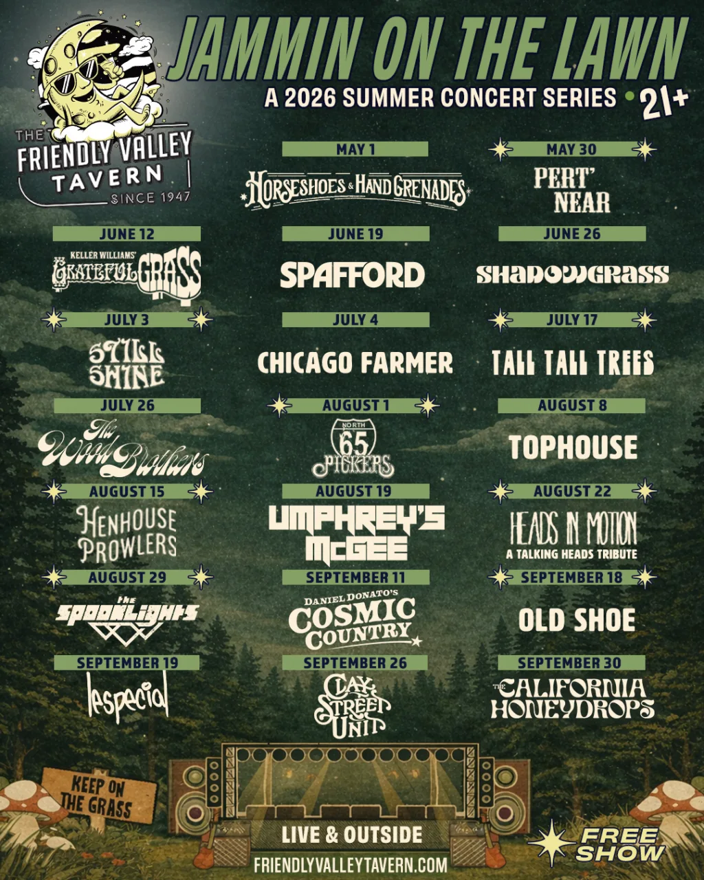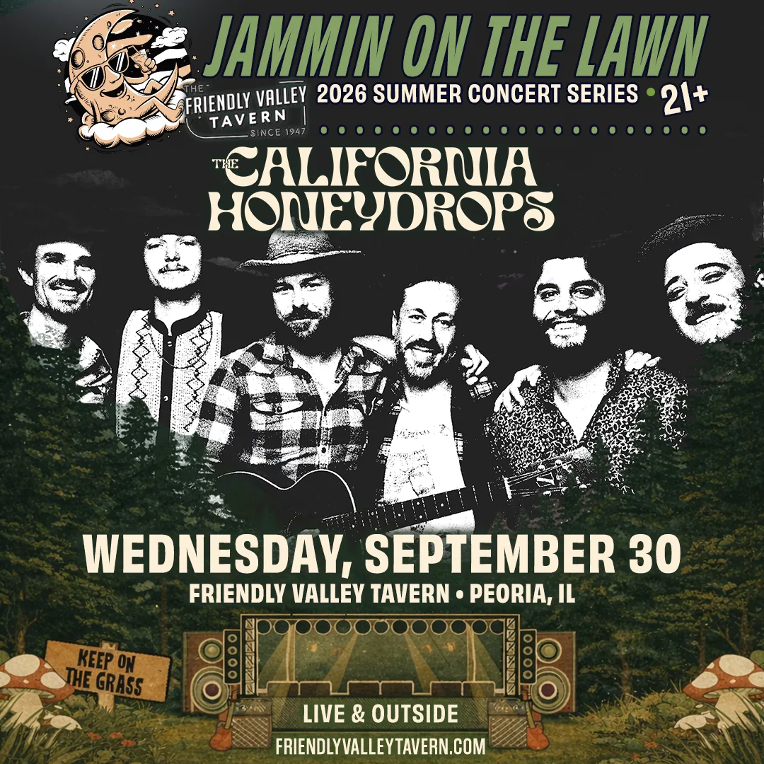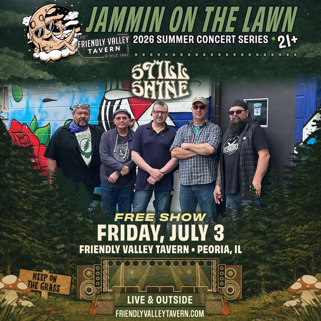 Jammin’ On The Lawn 2026 🤘 We’re back and making this our best season yet 🎸 Get ready for a summer full of music-filled nights under the Peoria sky at Friendly Valley Tavern… 20 shows, including multiple FREE concerts to enjoy with friends, family, and a cold drink in hand 🍻 FREE Parking Shuttle with more info coming soon.